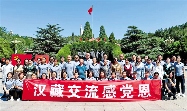 札达县教师交流团与石家庄市61中党支部在西柏坡举行党日活动。河北省第十批援藏工作队供图