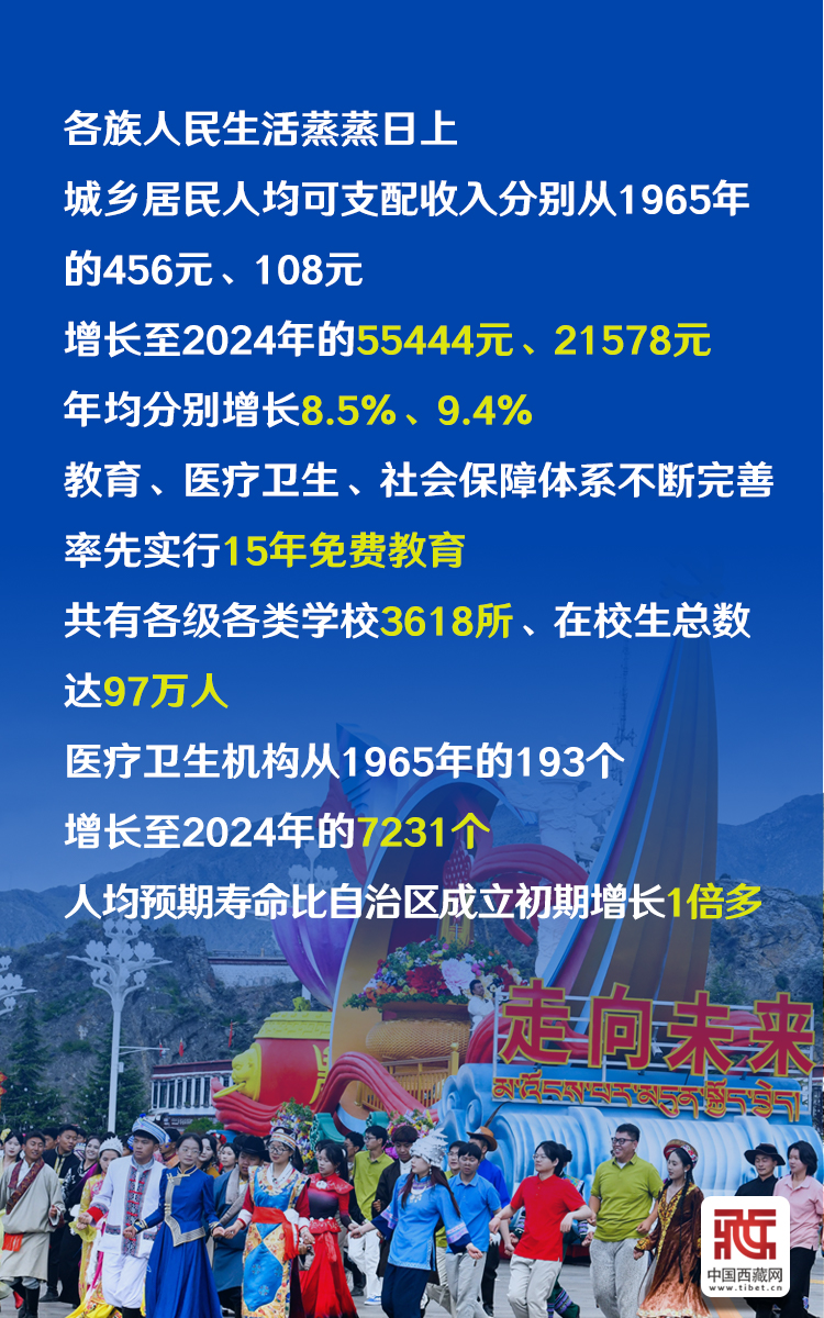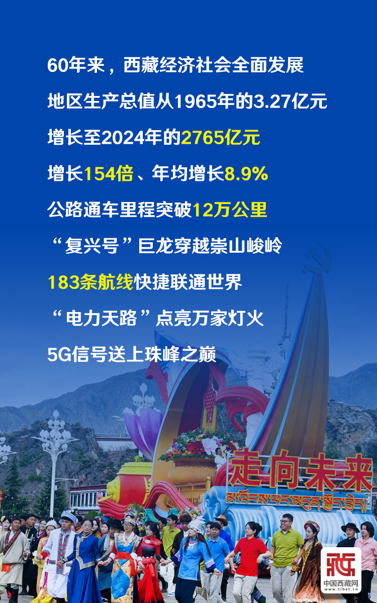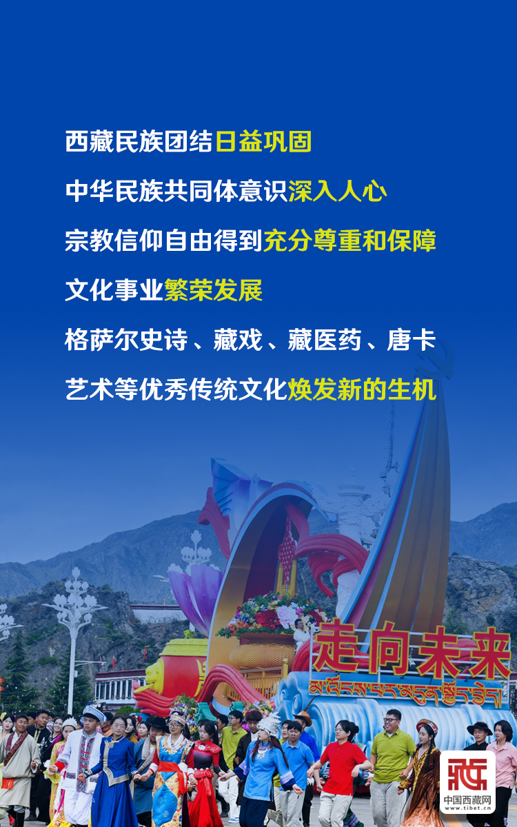 60年来,西藏经济社会全面发展,各族人民生活蒸蒸日上,生态文明建设成效显著,民族团结日益巩固,中华民族共同体意识深入人心,宗教信仰自由得到充分尊重和保障,文化事业繁荣发展。(中国西藏网 记者/王淑 冯重霖 边子捷 赵振宇 德吉卓玛 次旦拉姆 旦曲 贾华加 赵钊 姚浩然 刘莉 杨眉笑 海报制作/赵佳)