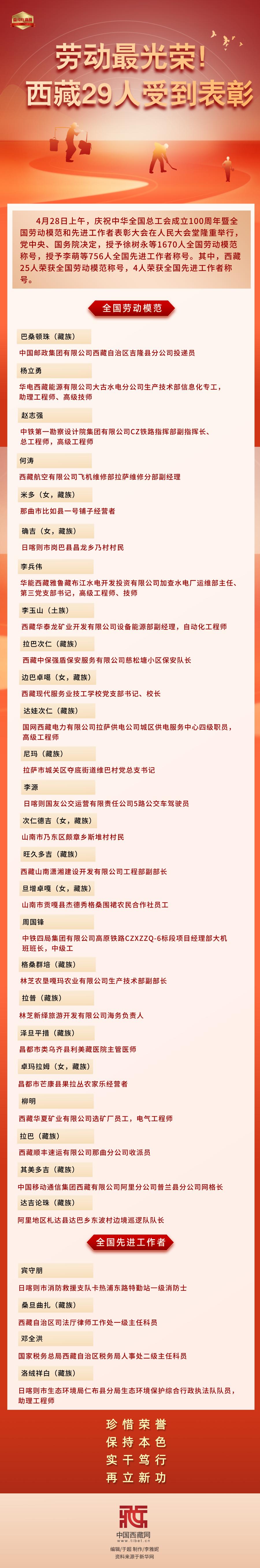 劳动最光荣!西藏29人受到表彰-尊龙官方平台