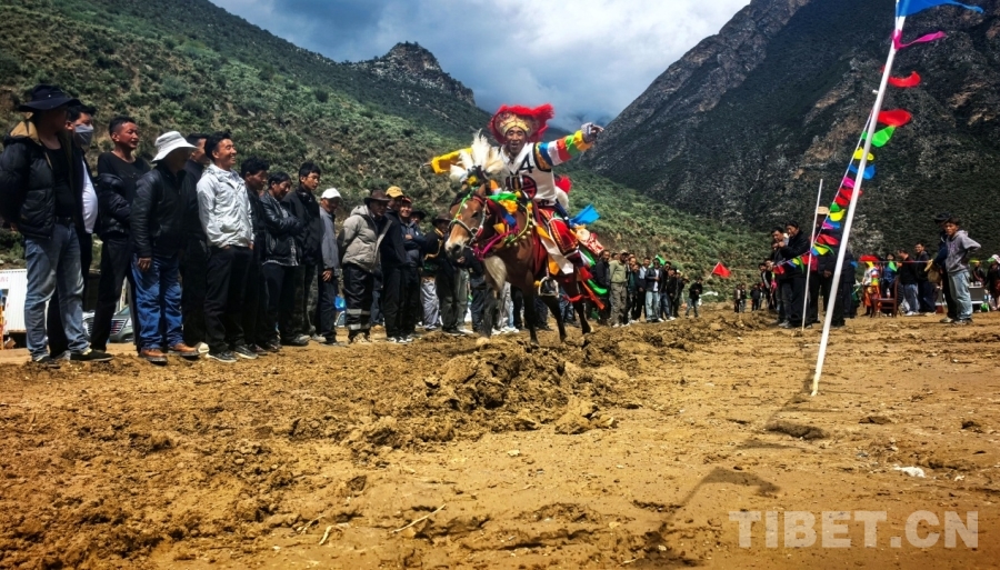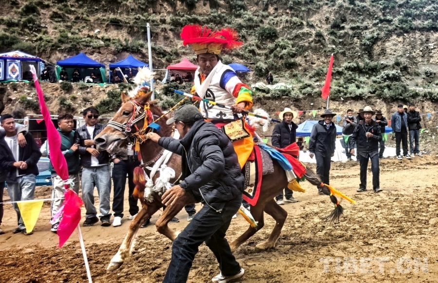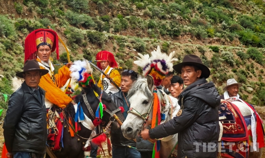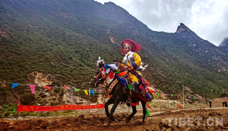 中国西藏网讯 8月29日,是西藏自治区山南市贡嘎县昌果乡普夏村今年望果节的第二天,这天举行的是望果节传统重头活动——赛马会。村里的马术高手们穿戴起本地传统武士装扮,将爱驹打扮得五彩缤纷,精神抖擞地参加骑马射箭、马术比赛。