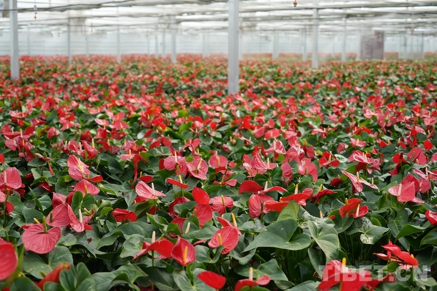 文成公主种下民族团结的种子,在今天依旧开出鲜艳的花。才纳园区总投资6亿元,其中江苏援藏资金1.5亿元。红掌花卉基地就是江苏省泰州市产业援藏的一个典范,基地由泰州国有企业苏中园艺公司和才纳园区合作建设,总面积16亩,温室规模1万余平方米,年可生产鲜花10万盆。