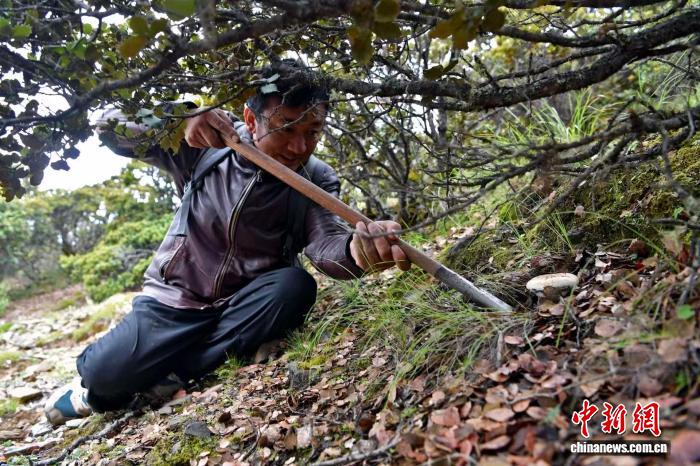 8月28日,五旬藏族“松茸猎人”扎称在甘孜州乡城县色坝村挖松茸。中新社记者 王磊 摄