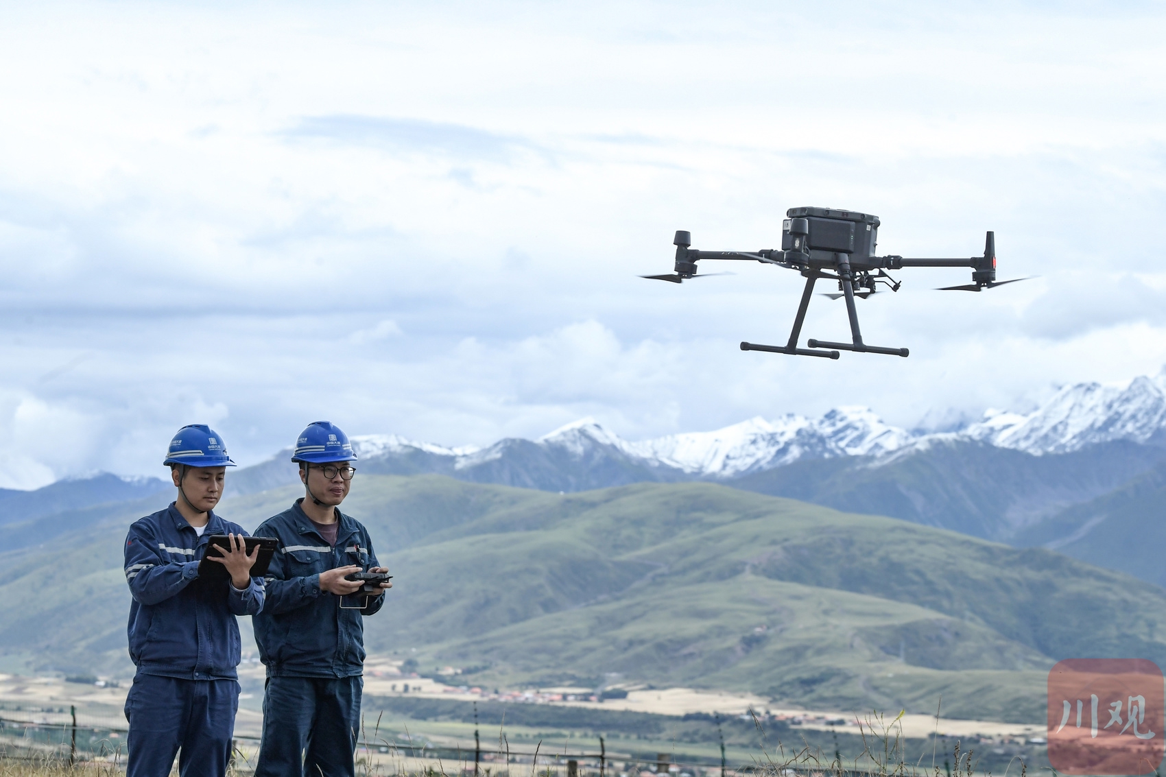 2025年8月30日,在四川省甘孜州甘孜县火古龙光伏电站,工作人员通过无人机对光伏组件进行巡检。李向雨 摄