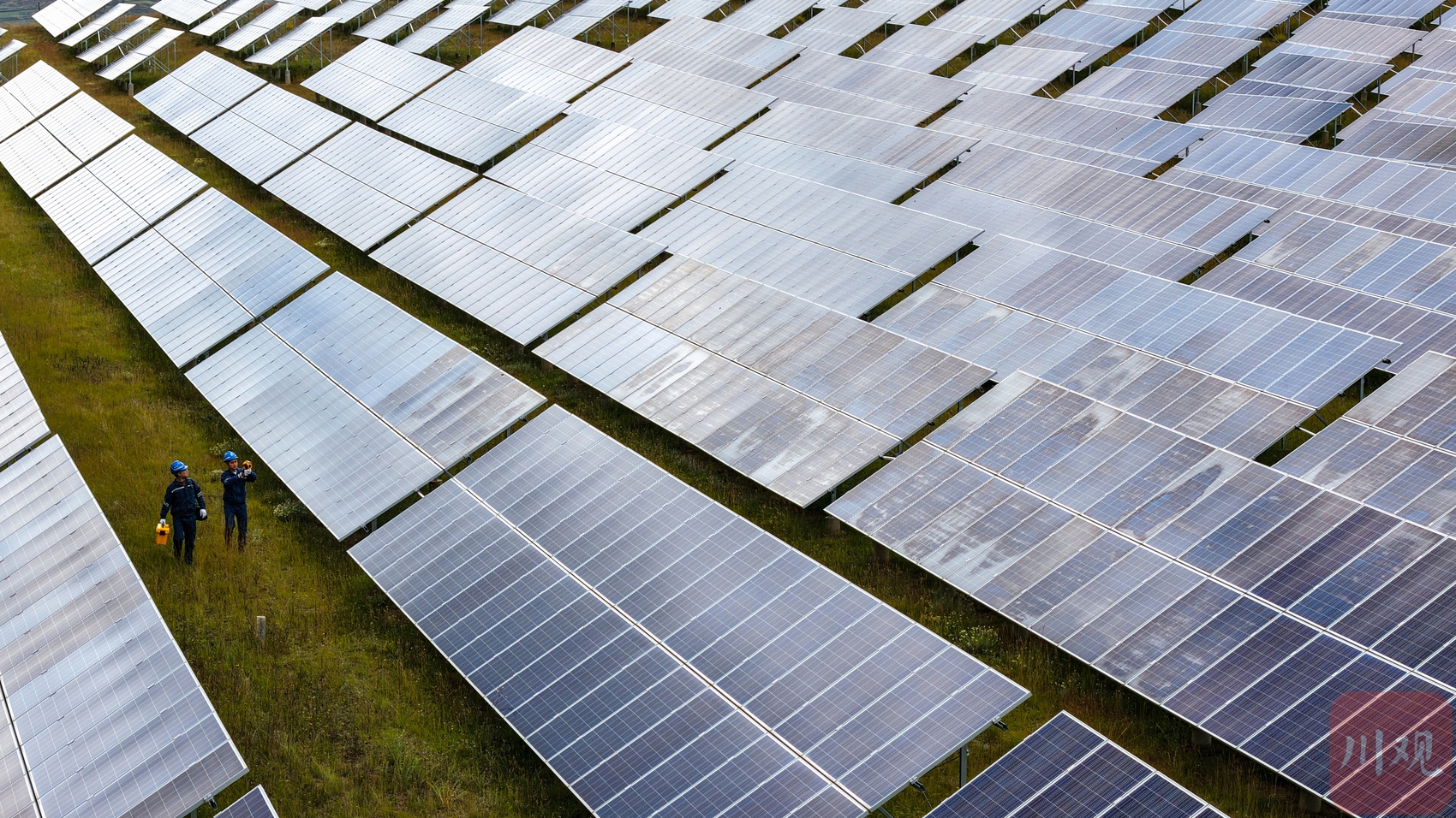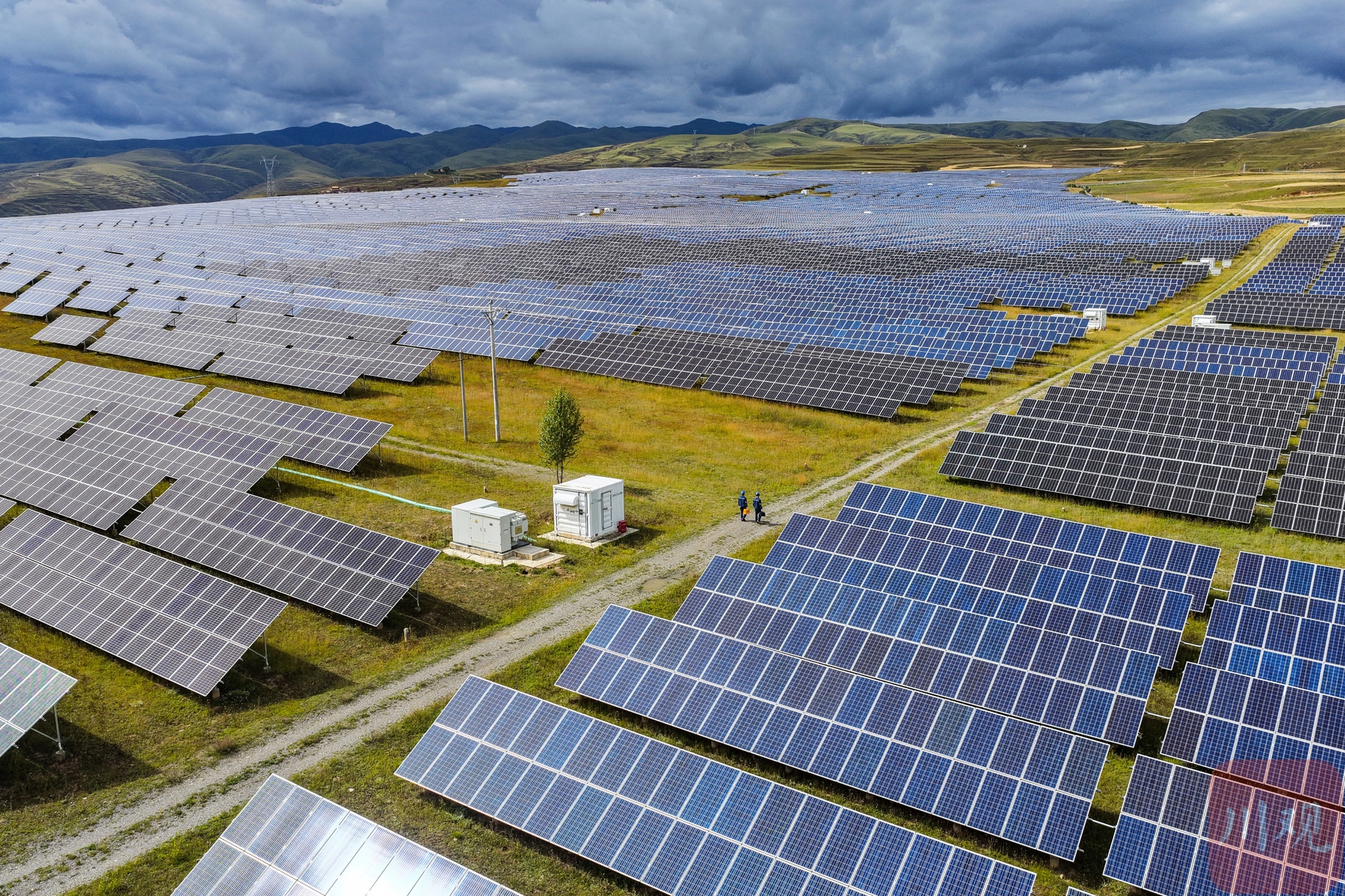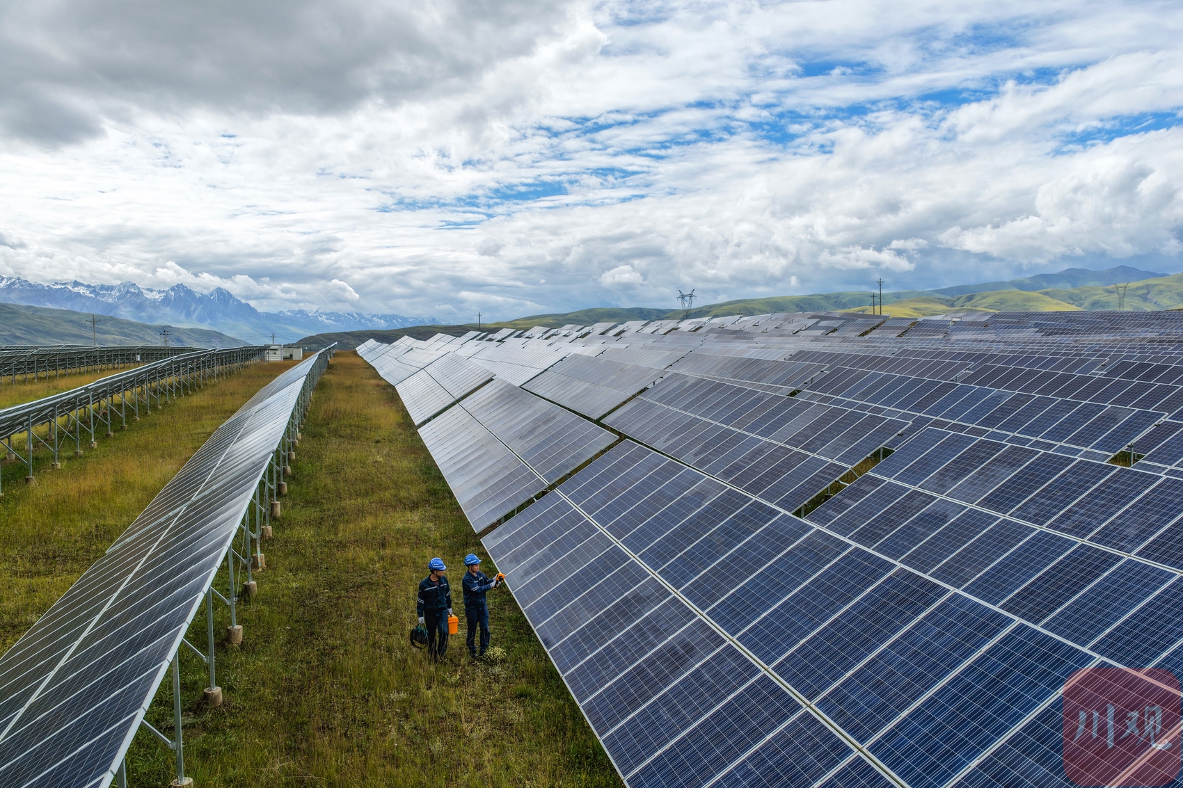 2025年8月30日,在四川省甘孜州甘孜县火古龙光伏电站,工作人员对光伏区发电设备进行日常巡检。李向雨 摄