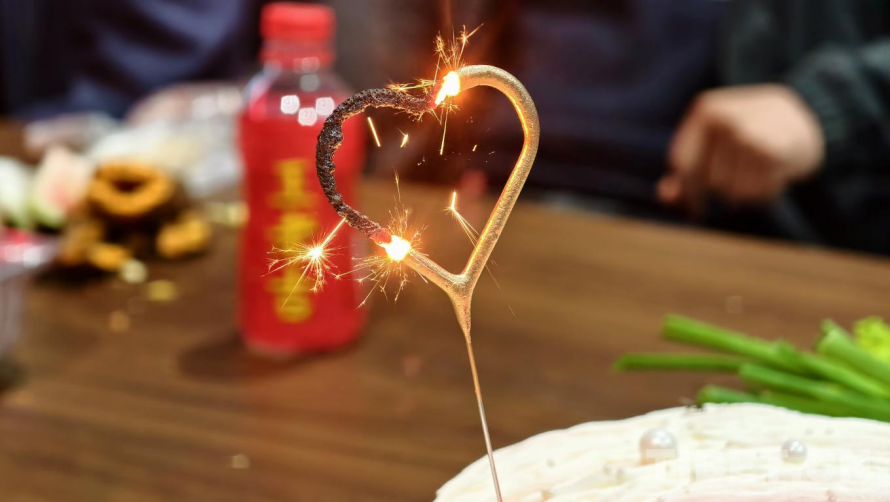 图为在正在燃烧的爱心蜡烛点亮七夕活动