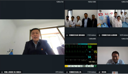 医院现场连线普兰县巴嘎乡卫生院,值班医生向中央代表团成员汇报情况,图像、声音都很清晰,可以看到心电监护的整个情况,代表团成员对这一技术表示肯定。