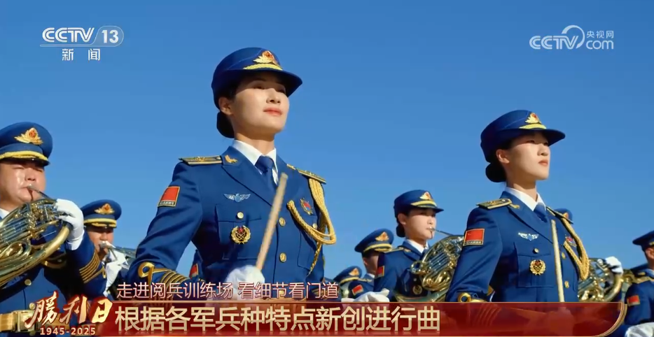 演奏的乐曲方面,除了《松花江上》、《太行山上》、《保卫黄河》等经典曲目,还有为本次阅兵量身打造的新作品,特别是在装备方队和空中梯队通过时,您将听到根据各军兵种特点,针对性新创的进行曲。