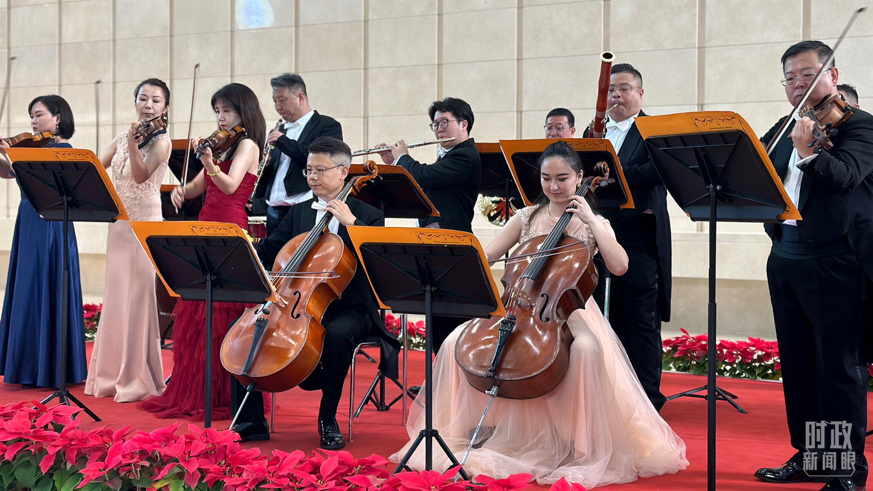 天津交响乐团演奏与会各国知名乐曲。(总台央视记者卢心雨拍摄)