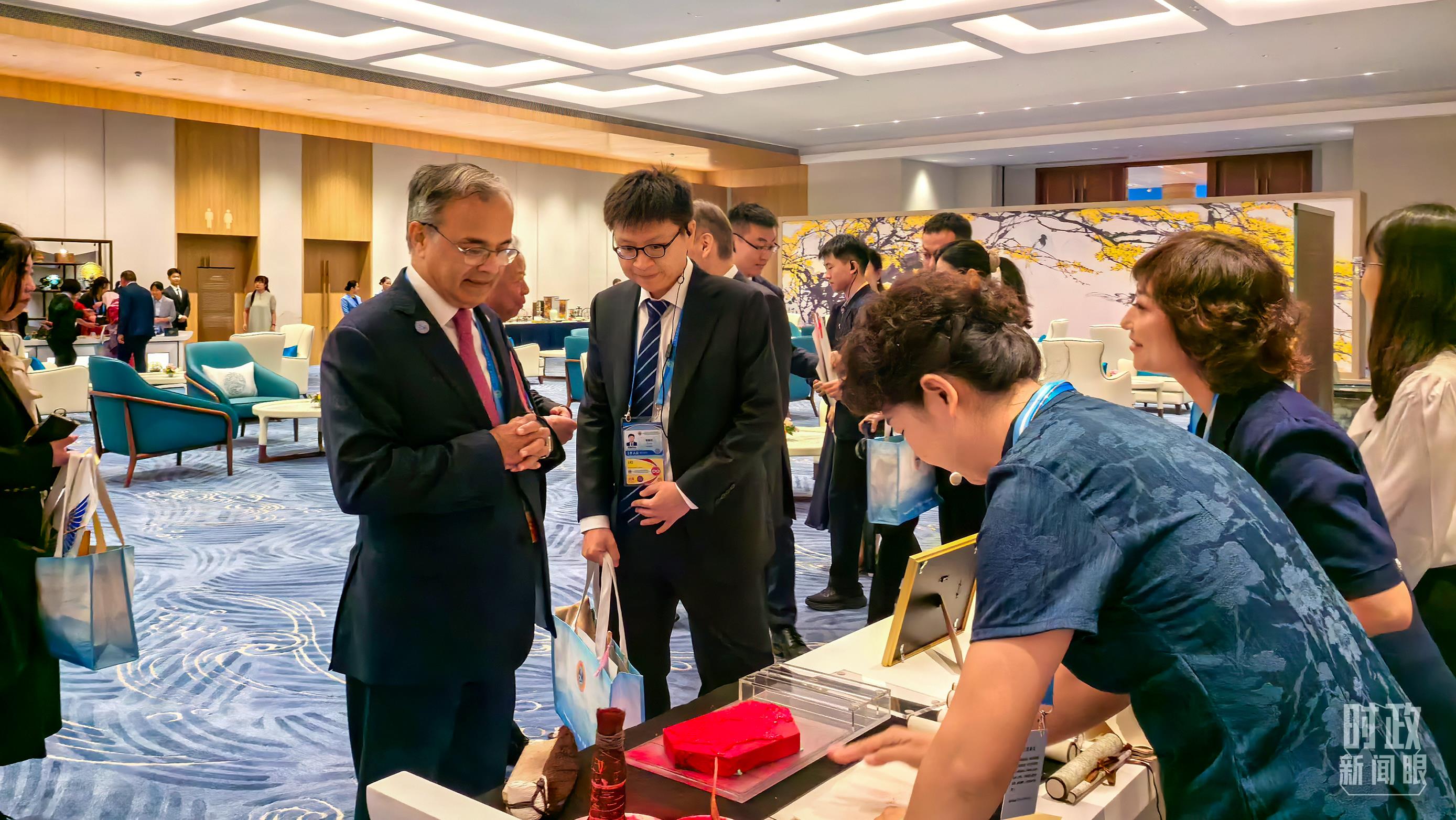 国际贵宾参观天津非物质文化遗产展示。(总台央视记者王子杭、姚瑶拍摄)