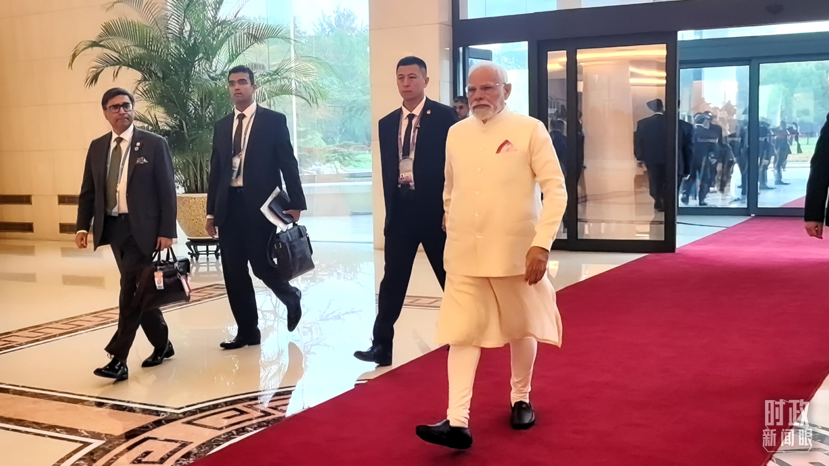 印度总理莫迪步入会见厅。(总台央视记者范凯拍摄)
