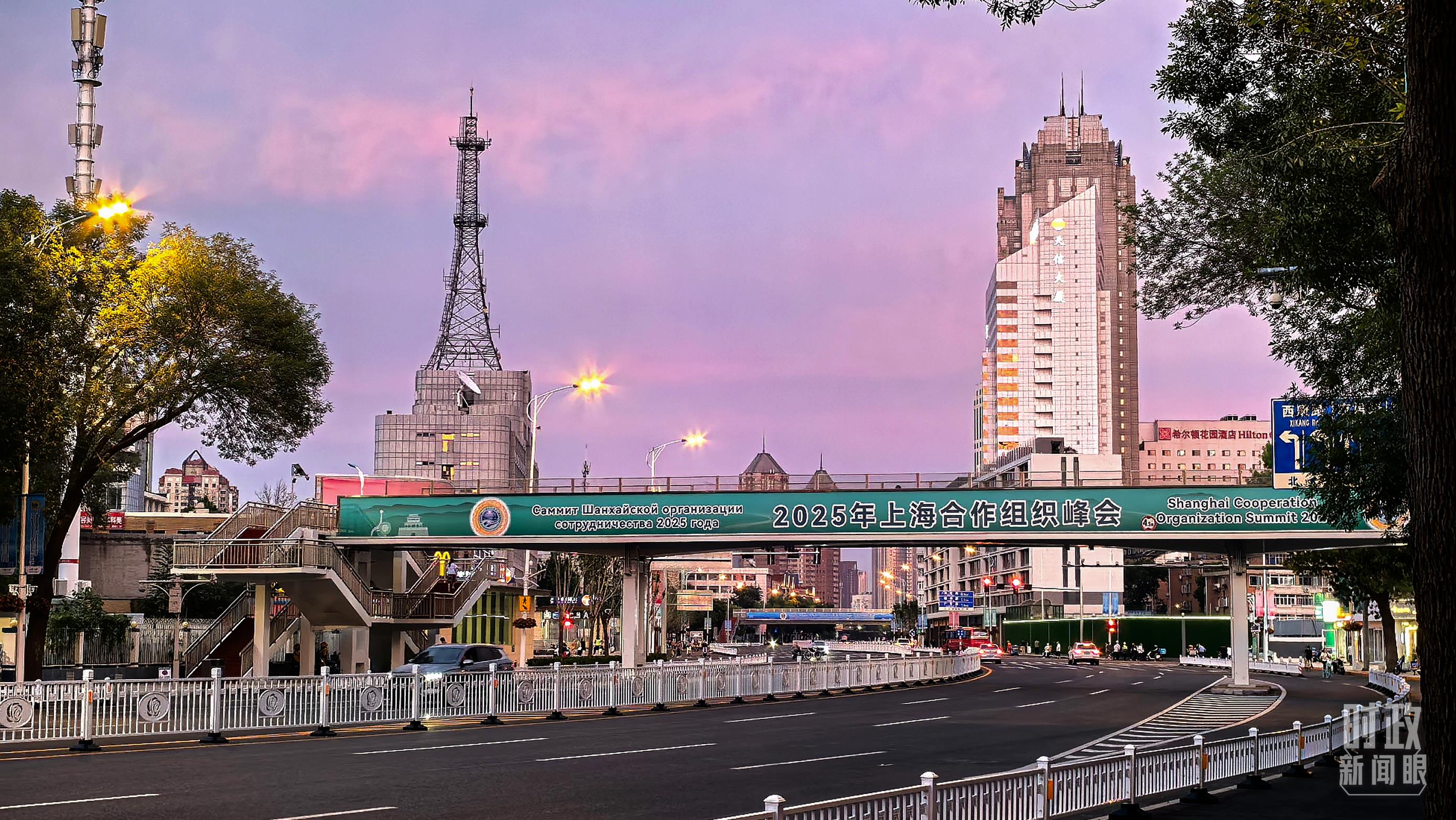 天津街头的上合峰会条幅。(总台记者孙强拍摄)