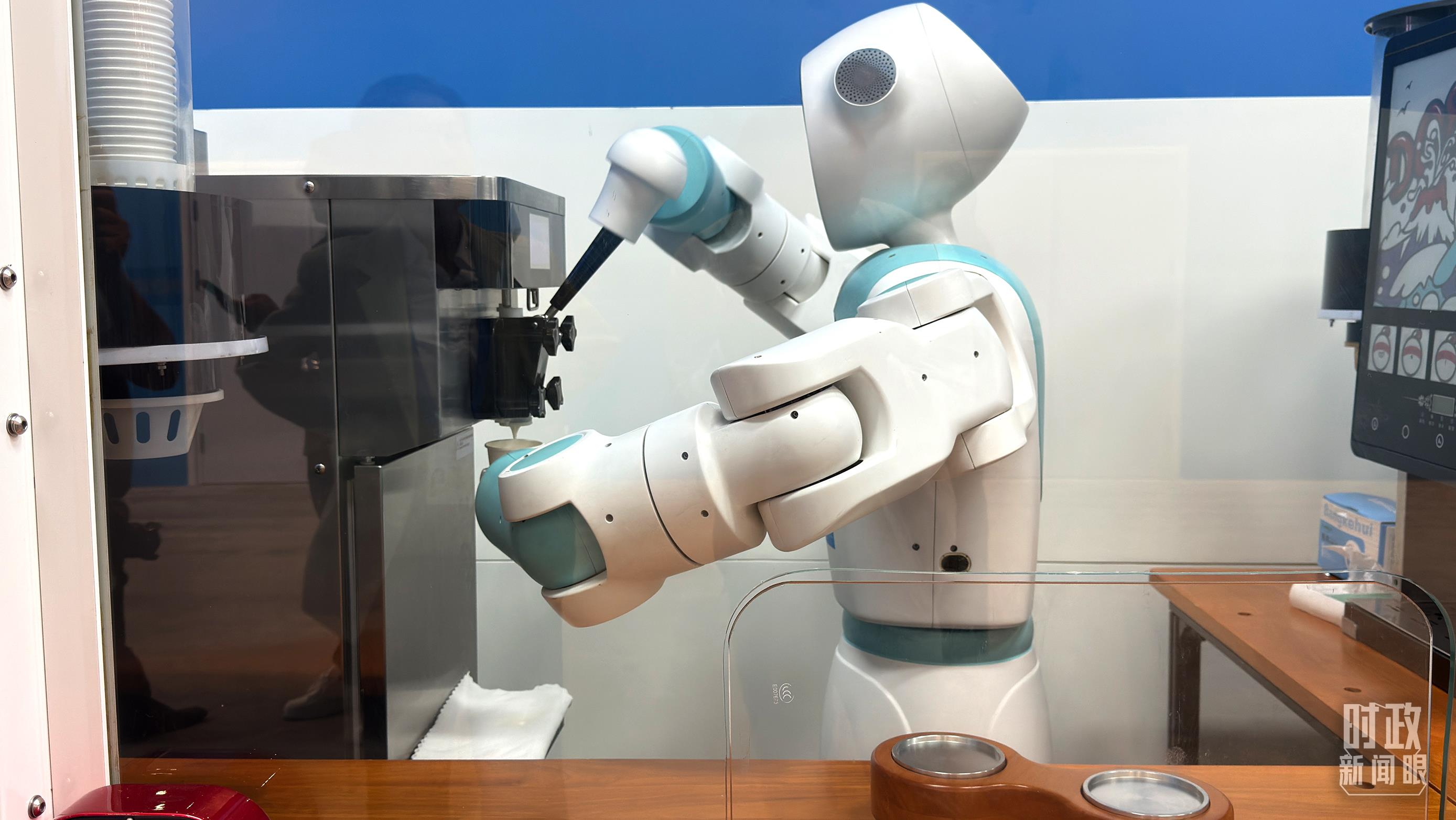 峰会新闻中心的智能机器人正在制作冰淇淋。(总台央广记者张永鹏拍摄)