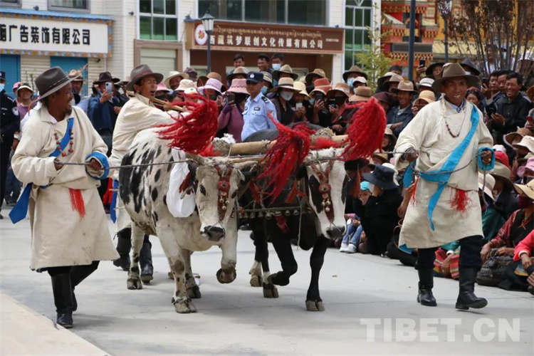 图为传统的耕地仪式表演