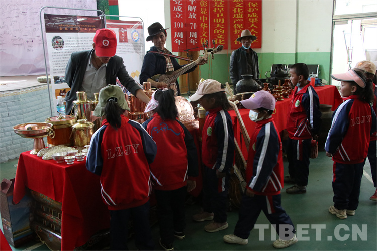 图为拉孜县完小学生参观传统手工艺产品