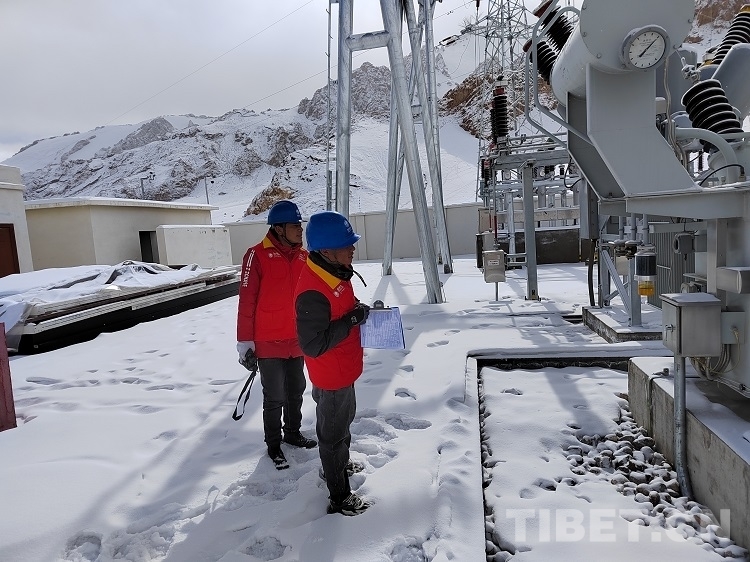 图为西藏阿里供电公司变电中心工作人员雪后进行隐患排查工作 摄影:阿旺朗杰
