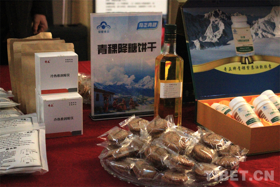 中国西藏网讯 近年来,随着青稞“三高两低”的独特营养价值受到消费者的广泛关注,形式多样的青稞食品与保健品也应运而生。在西藏奇正青稞健康科技有限公司青稞文化展览馆内的展架上,陈列着公司的“明星产品”:青稞脆片、青稞火锅面、青稞米饭、青稞植物奶……其中,一款青稞降糖饼干因为其展牌上的“小蓝帽”标识格外引人注目。