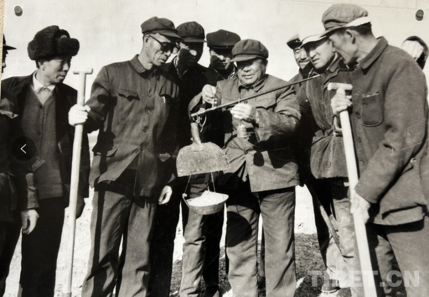 图为二十世纪60年代,甘肃公路职工用称铁锹的方式进行绩效考核
