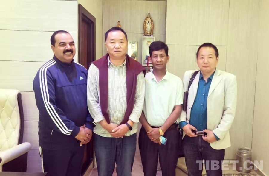 图为阿旺晋美(左二)在尼泊尔洽谈