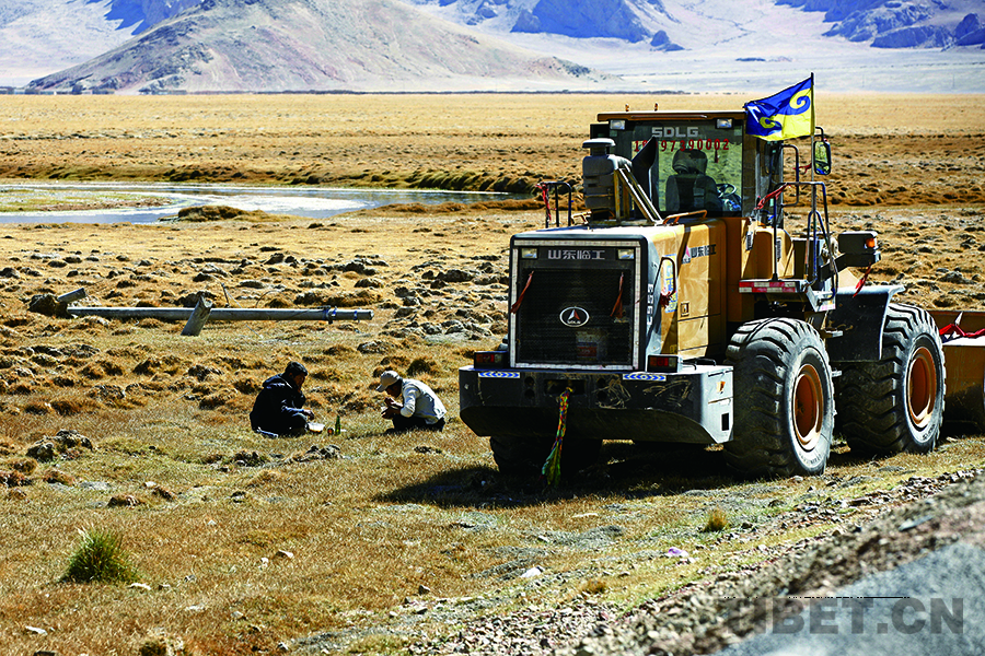 我们沿着349国道环湖而行,在白地村路段遇到赤列、索朗多吉、白玛赤列、巴桑顿珠、次仁仓姆和嘎桑正在忙碌着。