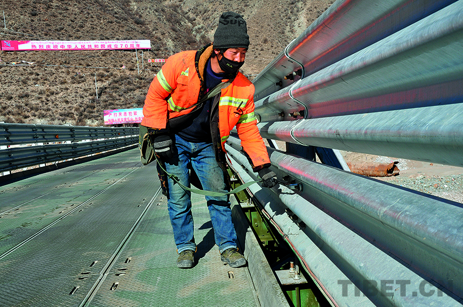 在西藏公路上行车,往往能见到忙碌的养护人。他们要么挥锨清除公路边的杂物,要么驱车沿途巡查,要么在群山中清除路障,要么在紧钢架桥护栏上的螺丝。在一条条公路上,川流不息的不仅有车辆,还有勇往直前的徒步者。有没有人注意到,自己春夏秋冬能在西藏大地上自由穿梭,是因为高原上的大路平坦畅通。为他们保驾护航的,正是那些犹如盛开在山脚下、公路旁黄色小花的养护人。