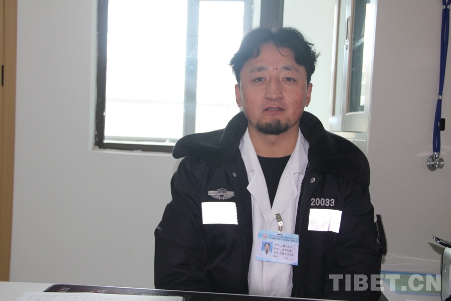 中国西藏网讯 雪白的大褂外披一件藏蓝色冬装便衣,这便是玛曲县阿万仓中心卫生院的执业医师杨长才旦。他的胸牌上写着“科室:洛隆村卫生室”,表明他是镇上五个大队其中之一的村医,集中在中心卫生院轮班为病患看诊。