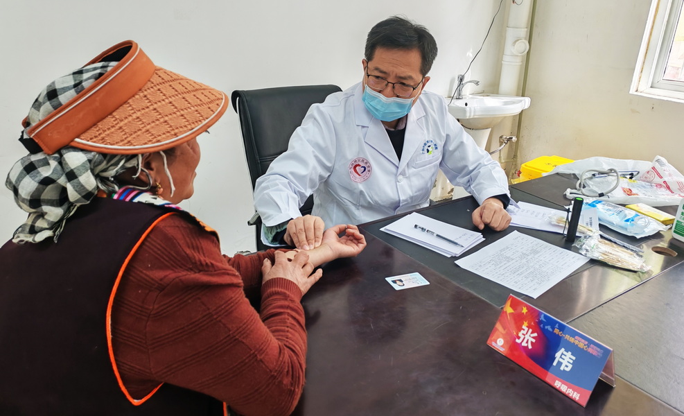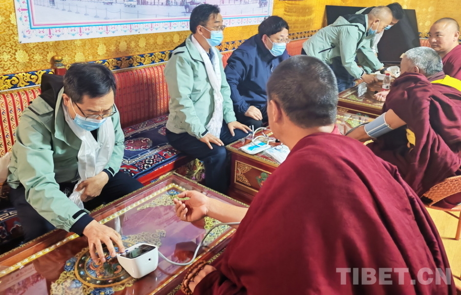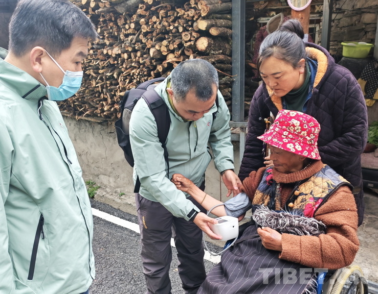除在沙尔宗镇卫生院设立固定义诊点,医疗专家们还深入乡村,为行动不便的老人等进行入户慰问巡诊;来到大藏寺,为寺内僧人送医送药。