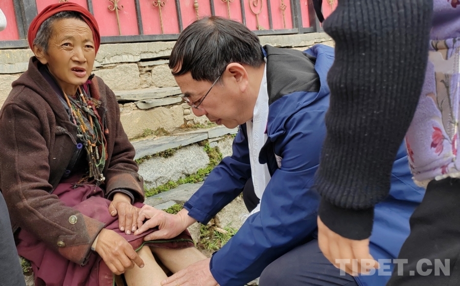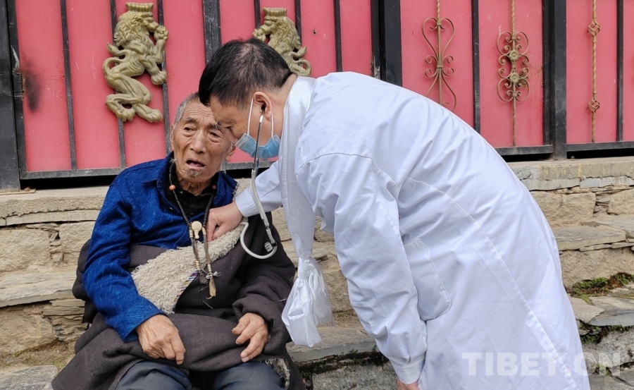 图为北京市普仁医院普外科主任、主任医师朱立东来到四川省阿坝州马尔康市日部乡山村巡诊,为行动不便的老人送医上门 摄影:张宏武