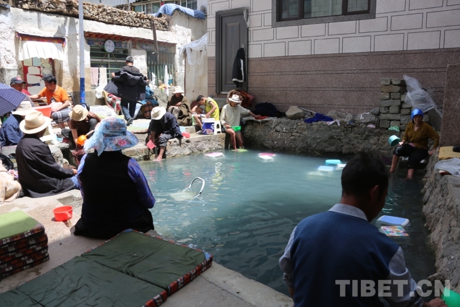 图为从谢通门县达那答乡顶嘎村来泡温泉的群众
