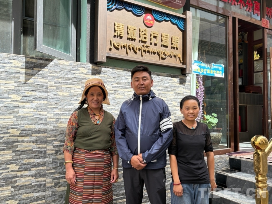 图为索郎旺堆夫妇与员工白玛曲珍