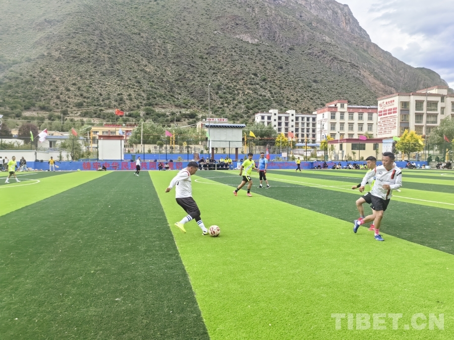 现场,传统舞蹈、藏戏等开幕式文艺表演活力四射,为比赛增添了热烈气氛。随着比赛的开始,各球队展开了激烈对决。球员们在绿茵场上奋力拼搏,传球、射门、扑救……精彩场面不断上演。场边,啦啦队的加油声、呐喊声此起彼伏,整个足球场沉浸在欢乐与激情的海洋中。