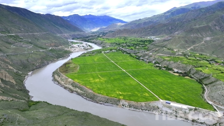 图为位于西藏自治区昌都市洛隆县江畔的青稞麦田
