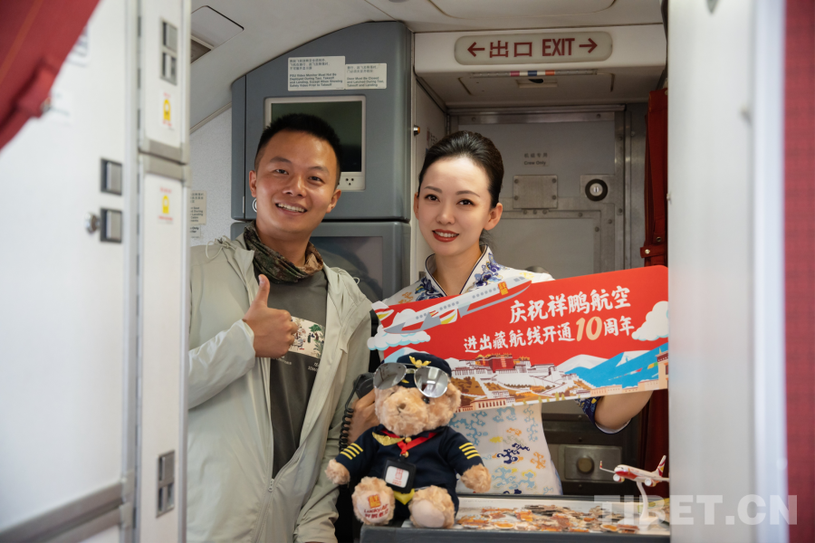 在当天从喀什飞往阿里的航班上,祥鹏航空策划开展了主题活动,庆祝航线开通10周年以及西藏自治区成立60周年。搭乘航班的每位旅客均收到了洁白的哈达;有奖问答环节气氛热烈,客舱内笑声与掌声此起彼伏;旅客分享的自己与高原的故事,更令不少人动容。航班在祝福、欢乐与感动中飞向雪域高原。