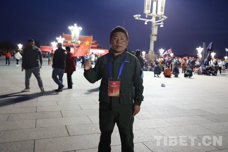 图为2024年4月,扎西索朗在天安门广场摄影:莫干措(资料图)