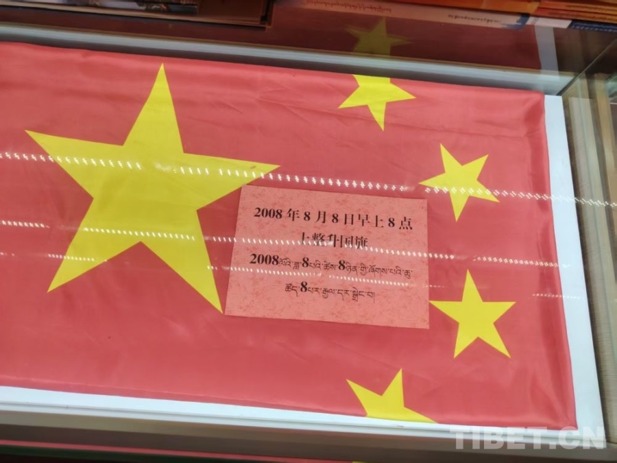 图为古曲扎巴老人珍藏的2008年8月8日早8点所升的国旗 摄影:王东