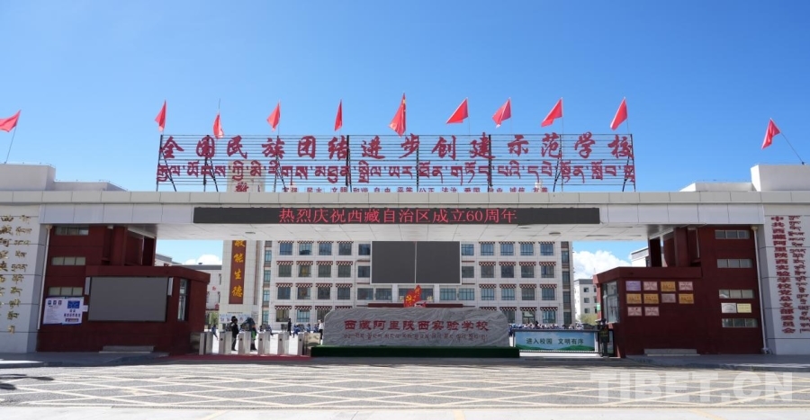 中国西藏网讯 平均海拔4500米的阿里,拥有这样一座现代化校园——窗明几净的教室里书声琅琅,绛红色的塑胶跑道铺展如新,各类多功能教室内设施设备一应俱全,一幢幢教学楼规整而建。西藏阿里陕西实验学校便如此,坐落于巍峨雄伟的燕尾山脚下,立德树人,成风化人。