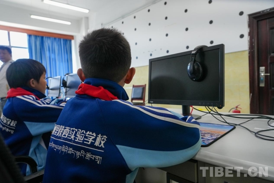 图为在西藏阿里陕西实验学校,孩子们正在上计算机课 摄影:边子捷