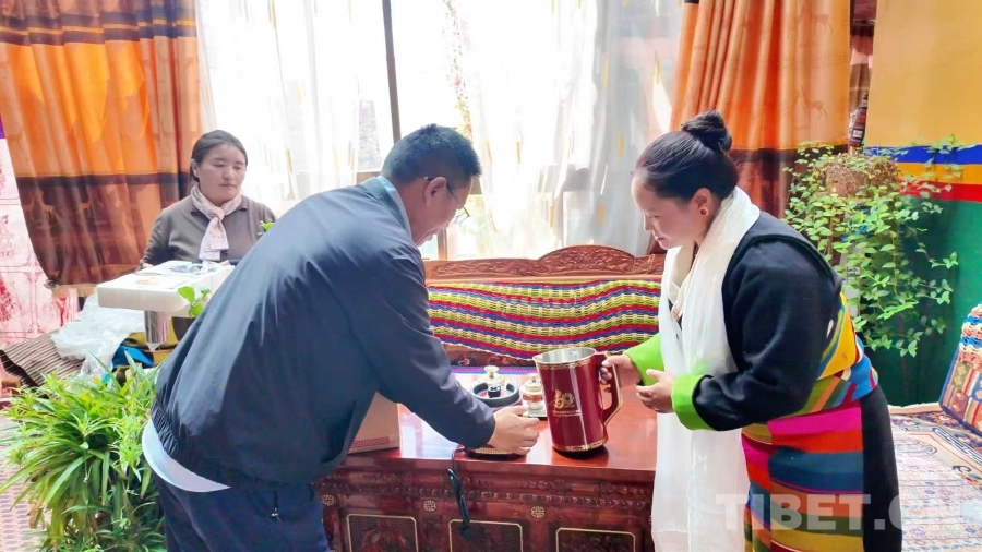 色雄村村民普多激动地说:“今天领导们来到我家,带来了西藏自治区成立60周年的珍贵纪念礼品,我内心感到格外温暖和激动。回想从前,我们从达孜乡搬迁之前,家里的条件还很困难。自从搬到色雄村以后,在党和政府持续的关怀与帮扶下,我们住进了宽敞明亮的新房,如今的生活越来越幸福,经济收入也逐年提高。这一切变化,真的是翻天覆地。我衷心感谢党和国家一直以来的恩情!”