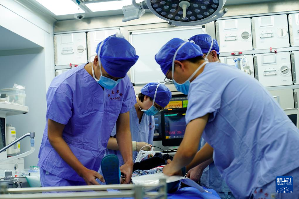 医护人员在移动介入治疗手术车上为先心病患儿进行微创手术。新华社记者 刘洪明 摄