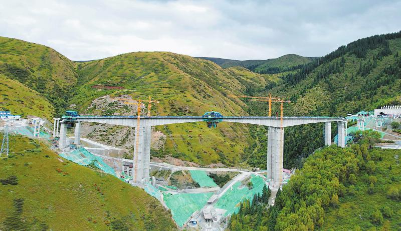 九月二十一日,久马高速海子山特大桥合龙。蜀道集团供图
