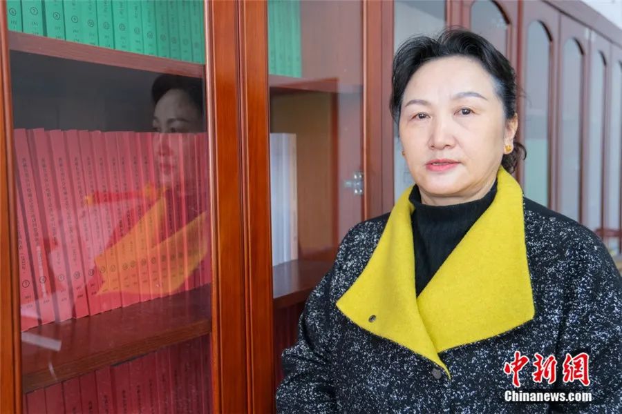 2025年3月20日,巴桑卓玛在办公室,其身后是近年在西藏各地调研的资料。中新社记者 江飞波 摄。