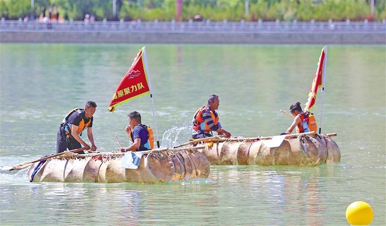 2025年西藏自治区端午节牛皮船(龙舟)赛比赛现场。记者 白玛泽旺 摄