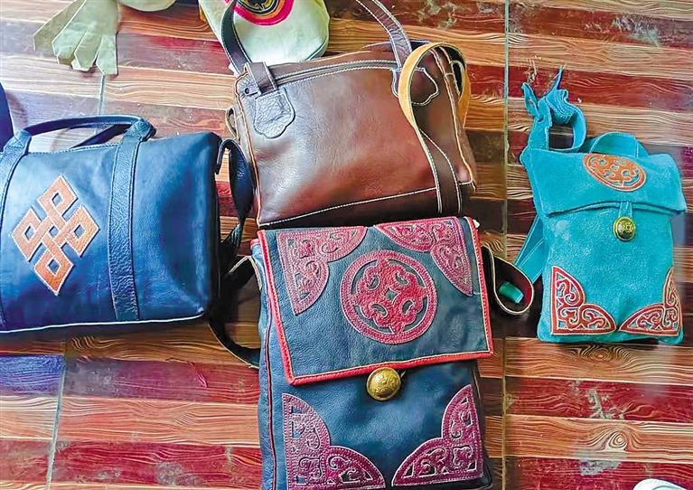 俊巴手工牛皮加工合作社的手工皮包。记者 晓勇 摄