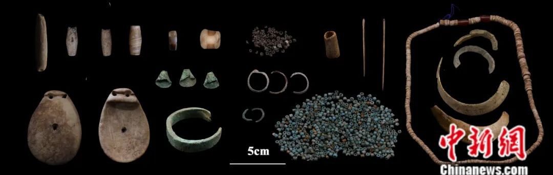 玛不错遗址第二期遗物(石质、骨质、金属装饰品,骨针、滑石珠、红玉髓、玻璃珠等)。受访者供图