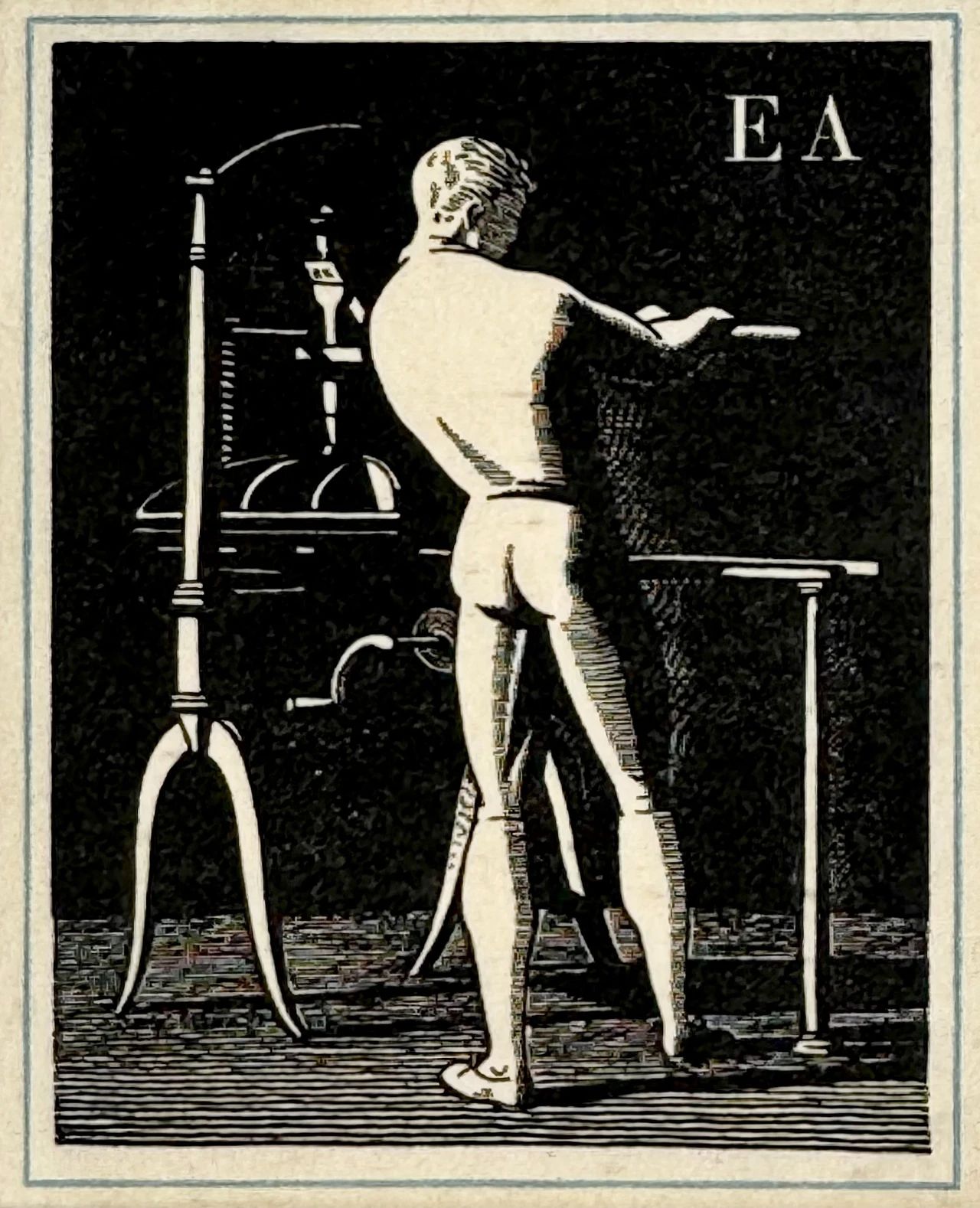 何为民收藏的纹章藏书票,作者是奥地利版画家阿尔弗雷德-科斯曼 (alfred cossmann 1870-1951) 。受访者供图