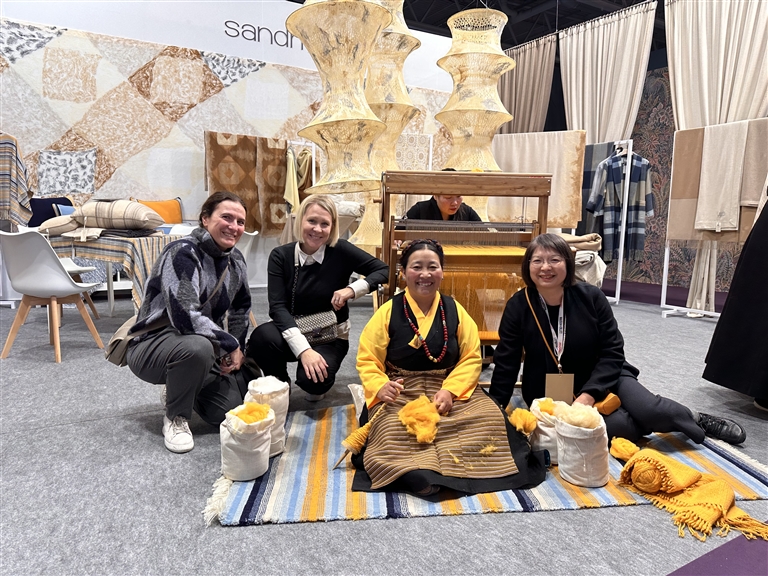 上海市援藏干部人才引进的沙涓携西藏江孜氆氇亮相2024年法国巴黎maison&objet展会。