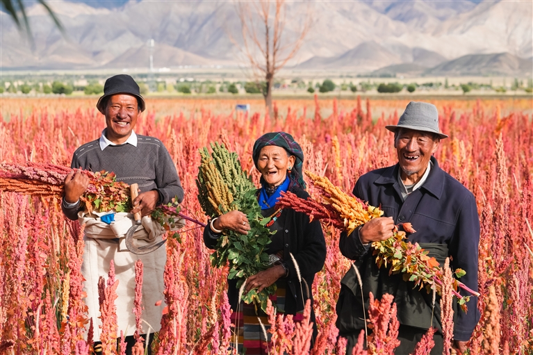 上海市援藏重点项目——萨迦县高原藜麦种植农户喜获藜麦丰收。