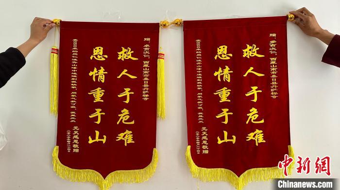 图为寺内僧人因救人收到的锦旗。 谢牧 摄