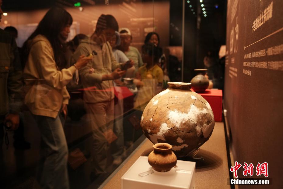 7月15日,在位于西藏拉萨的西藏博物馆,卡若遗址出土的陶器吸引观众。据了解,西藏博物馆设有基本陈列《雪域长歌—西藏历史文化展》《离太阳最近的人—西藏民俗文化展》,充分展示西藏地区历史发展进程与文化面貌。中新社记者 张祥毅 摄