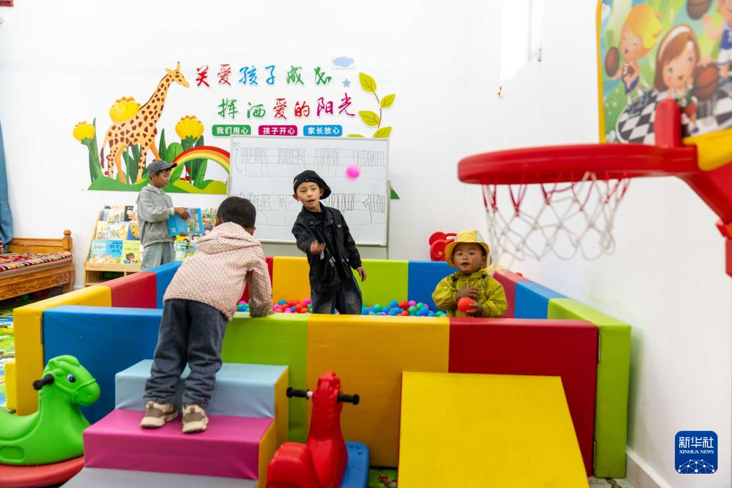 7月17日,小朋友在三有村幸福驿站托幼室内玩耍。新华社记者 旦增尼玛曲珠 摄
