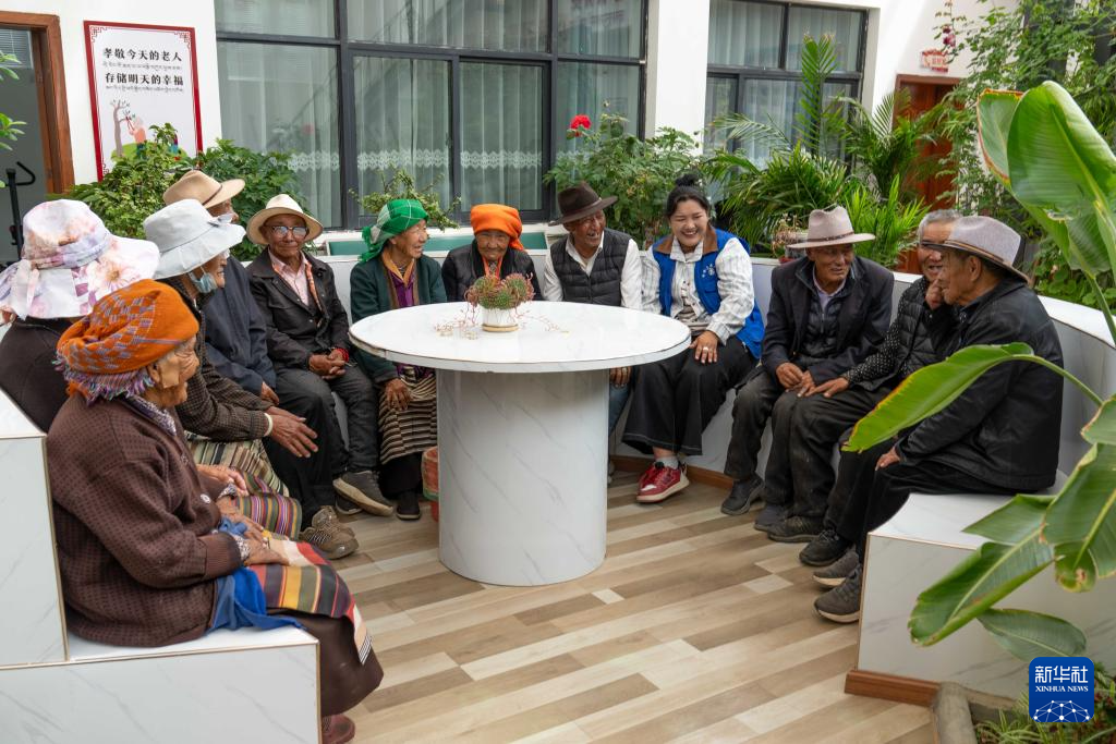 7月17日,老人们在三有村幸福驿站日间照料室聊天。新华社记者 旦增尼玛曲珠 摄